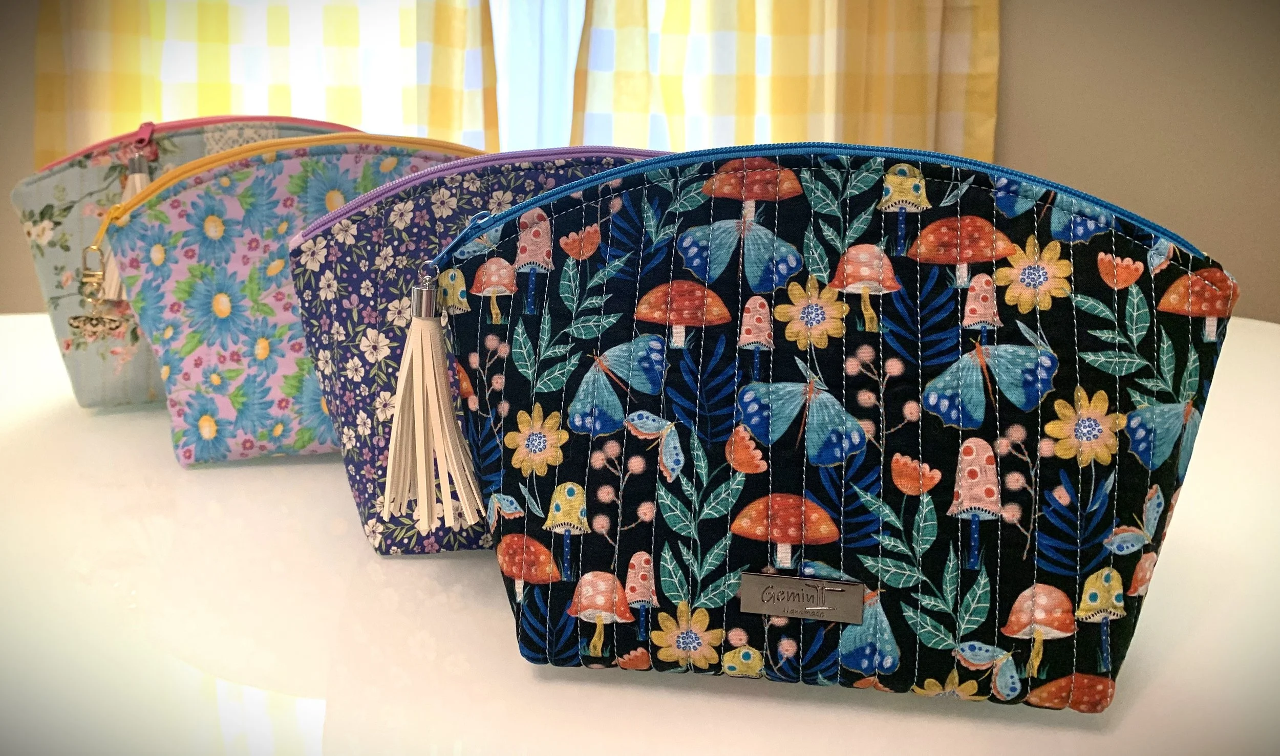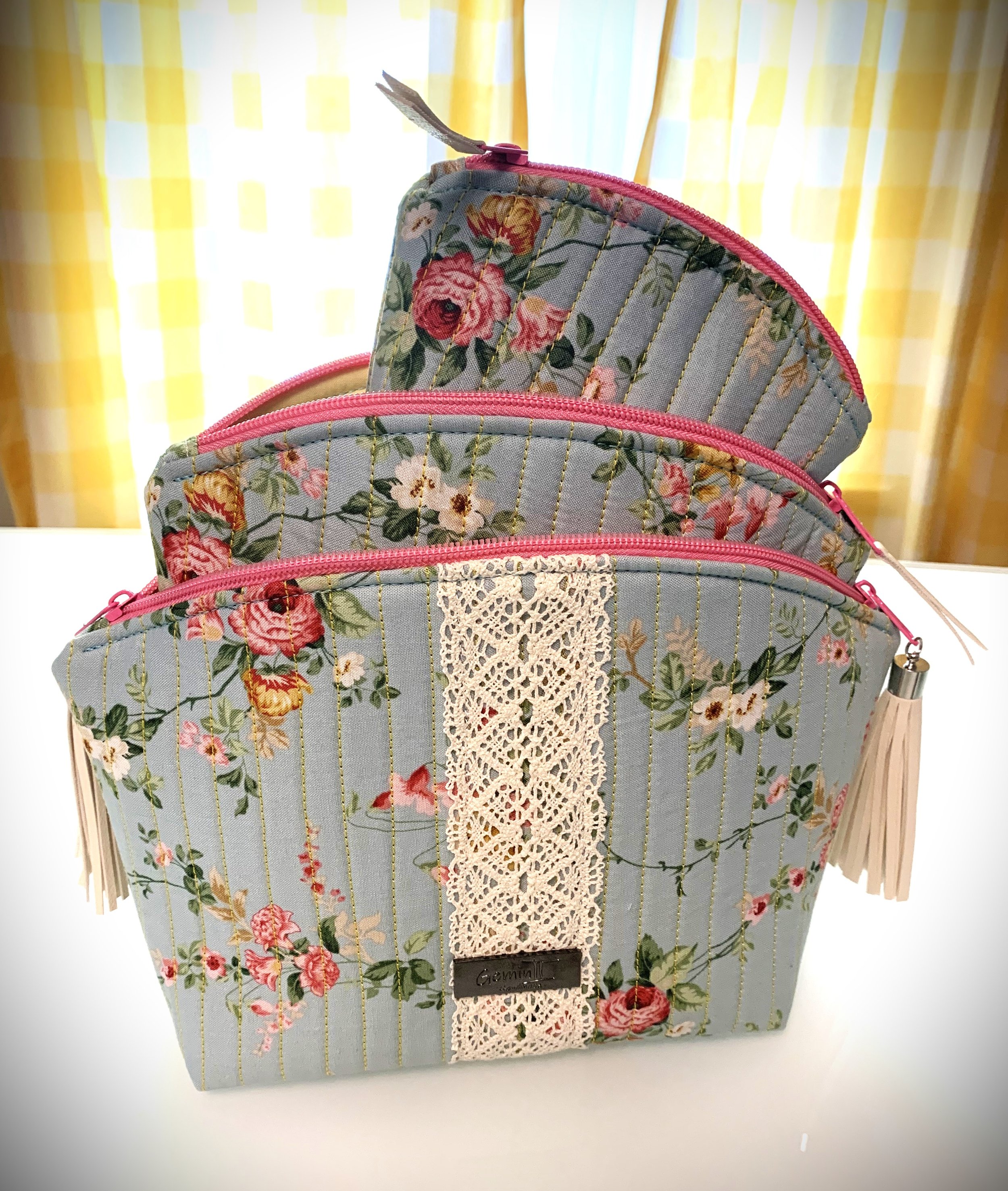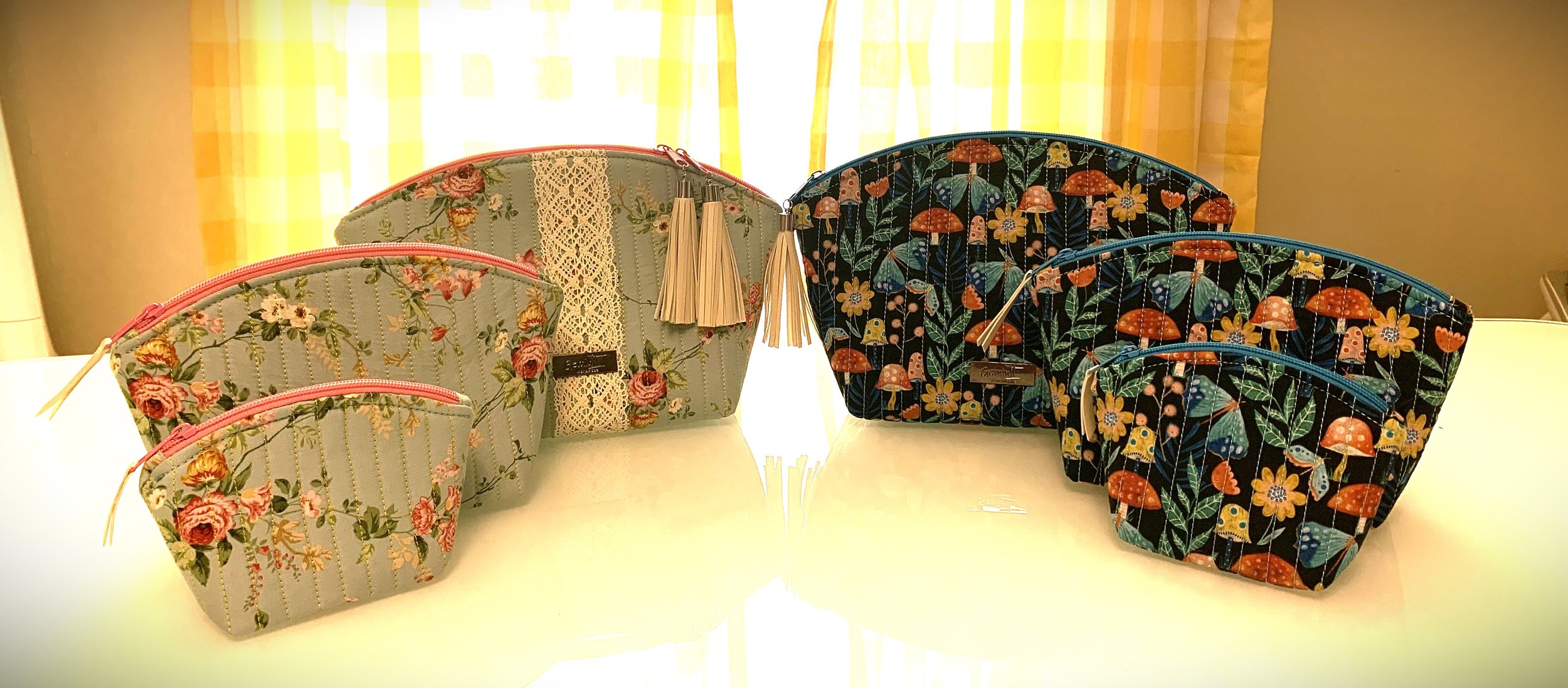 The cosmetic bags were made from a simple template. You can create the template yourself and size it to your needs.
